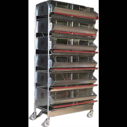 Quail cages manufactured in the good ‘ol USA! to meet the needs of our breeders, hobbyists, and commercial farmers of both Standard and Jumbo Quail. Whether you’re searching for stackable quail cages, Breeder systems, and Eggs and Meat production we offer durable, easy and clean cages that ensure your birds' safety and comfort. Designed for functionality and space efficiency, our cages for quail provide proper ventilation and optimal living conditions. We can make customizations to your requirements.